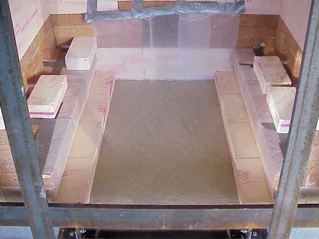 After troweling on a thin coat of mortar on top of the steel deck, the IFB bricks are layed tight agains the existing brickwork. Only a layer of wax paper keeps the two separate.